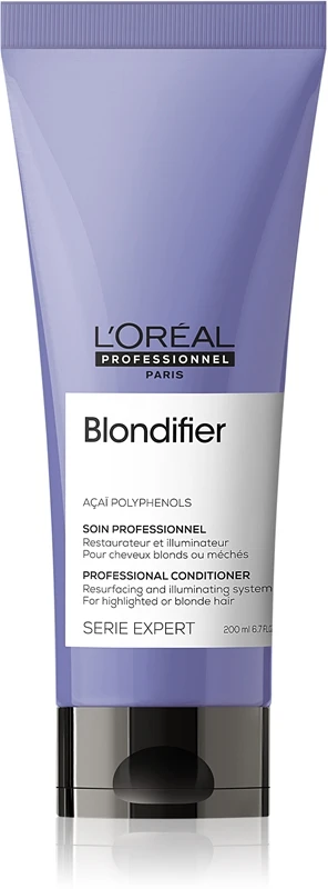 Dans le cadre de votre routine de soins capillaires, pour une couleur blonde parfaite sans les tons chauds jaunes indésirables, utilisez en combinaison avec les produits de la même gamme tels que le shampoing embellisseur régénérateur L’Oréal Professionnel Serie Expert Blondifier.